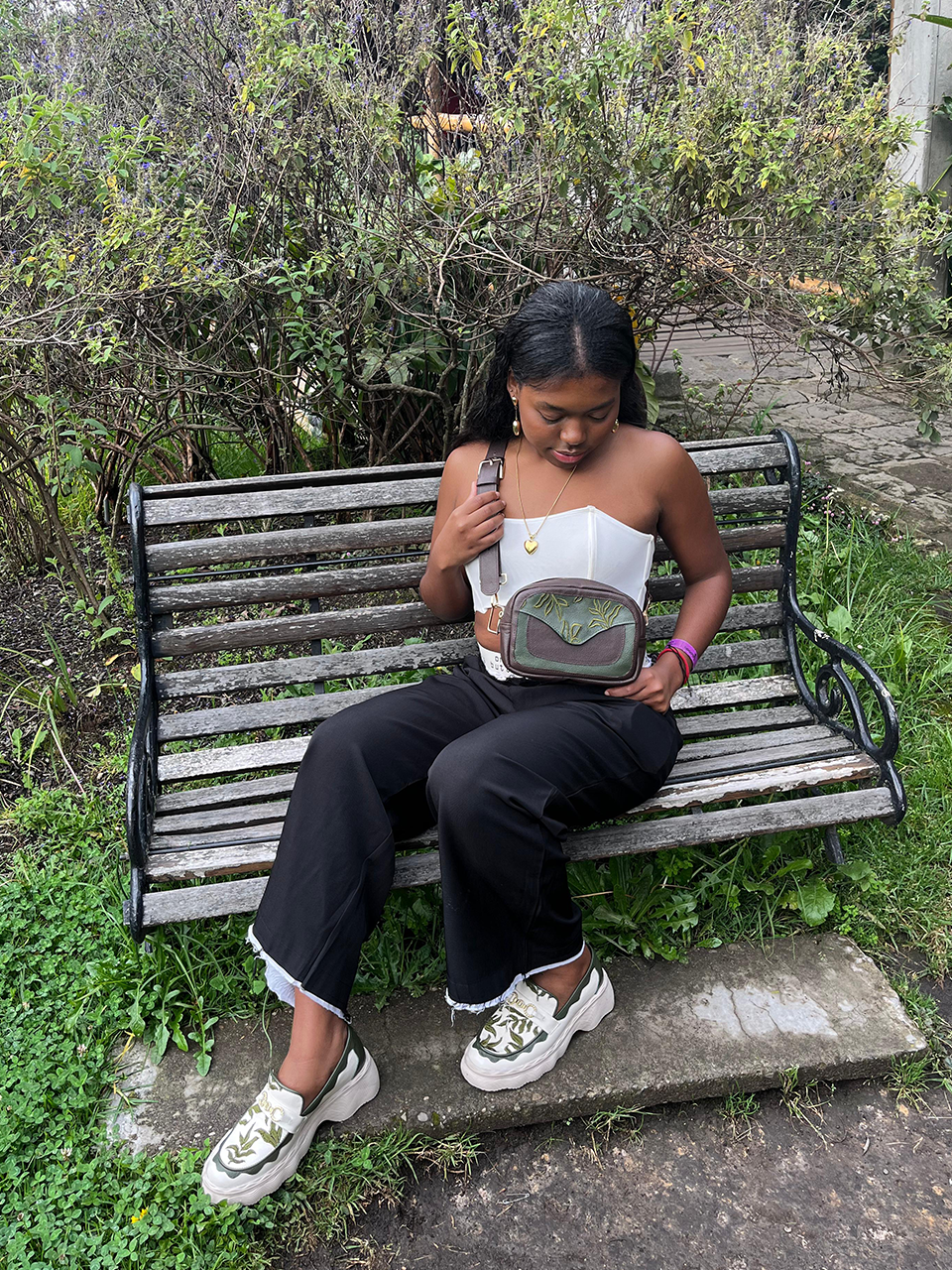 La colección representa el proceso de cambio, valentía y búsqueda espiritual que atraviesa el ser humano. Cada bolso y cada par de zapatos simboliza ese recorrido: sostener, proteger y acompañar.